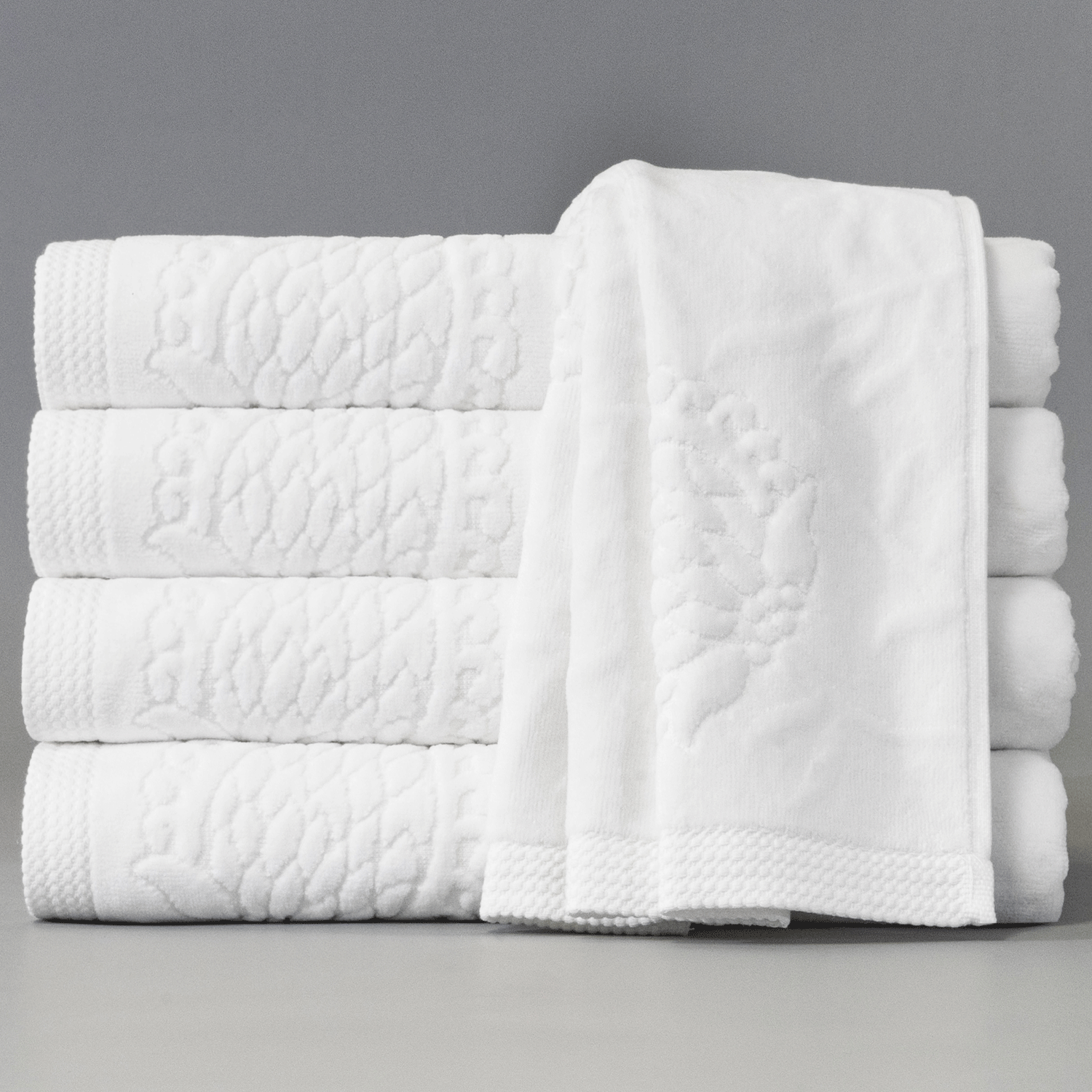 100% cotton velour with a soft, plush finish and a refined jacquard design — the Antonio Towel in White is a timeless bathroom staple.