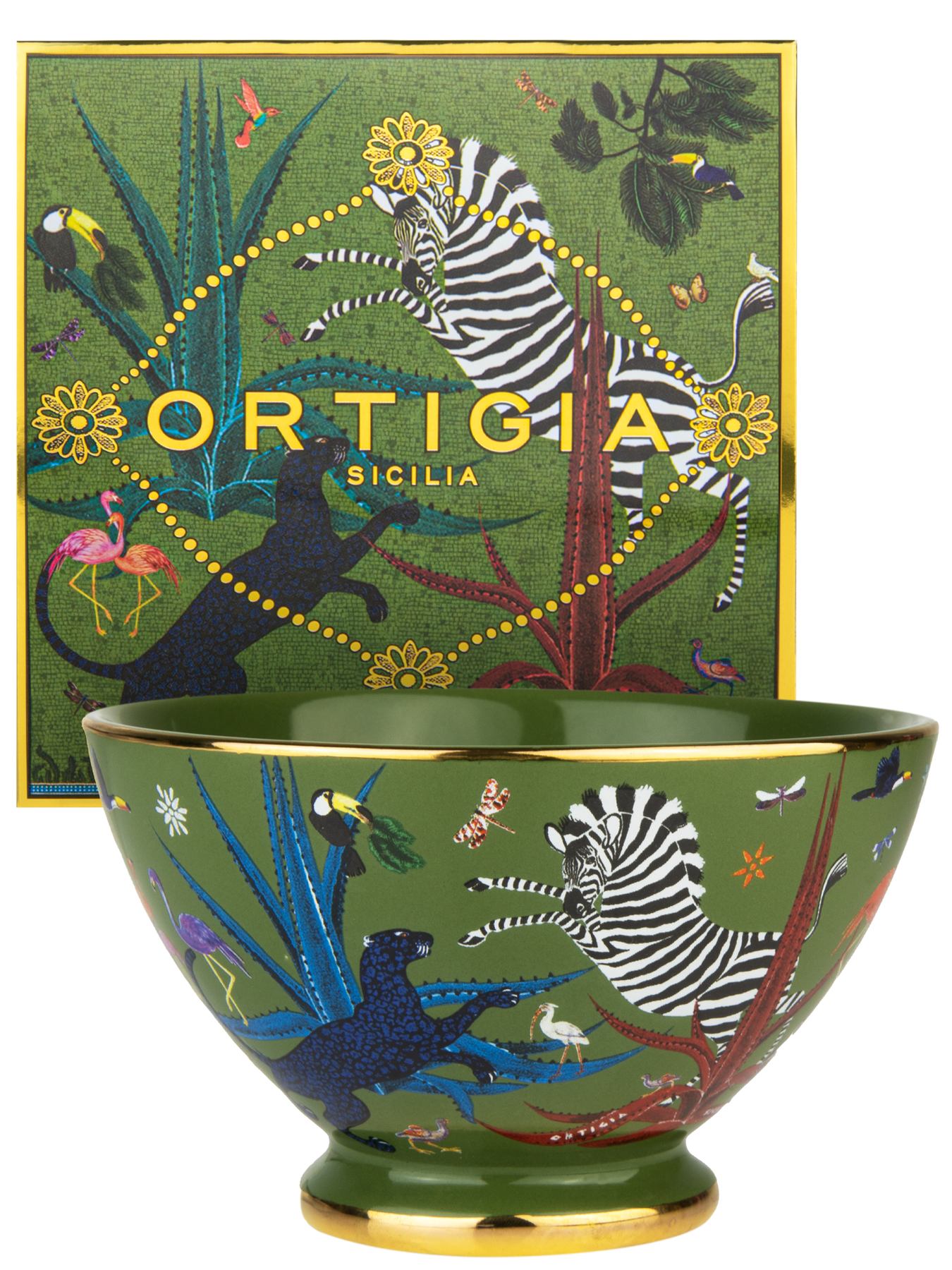 Evoking the spirit of Ortigia’s lush landscapes, the Jungle Bowl is a hand-decorated ceramic piece finished with exquisite gold serigraphy. Its refined proportions and artisanal detailing make it a timeless addition to any interior — whether styled as a decorative accent or used to elevate everyday rituals.