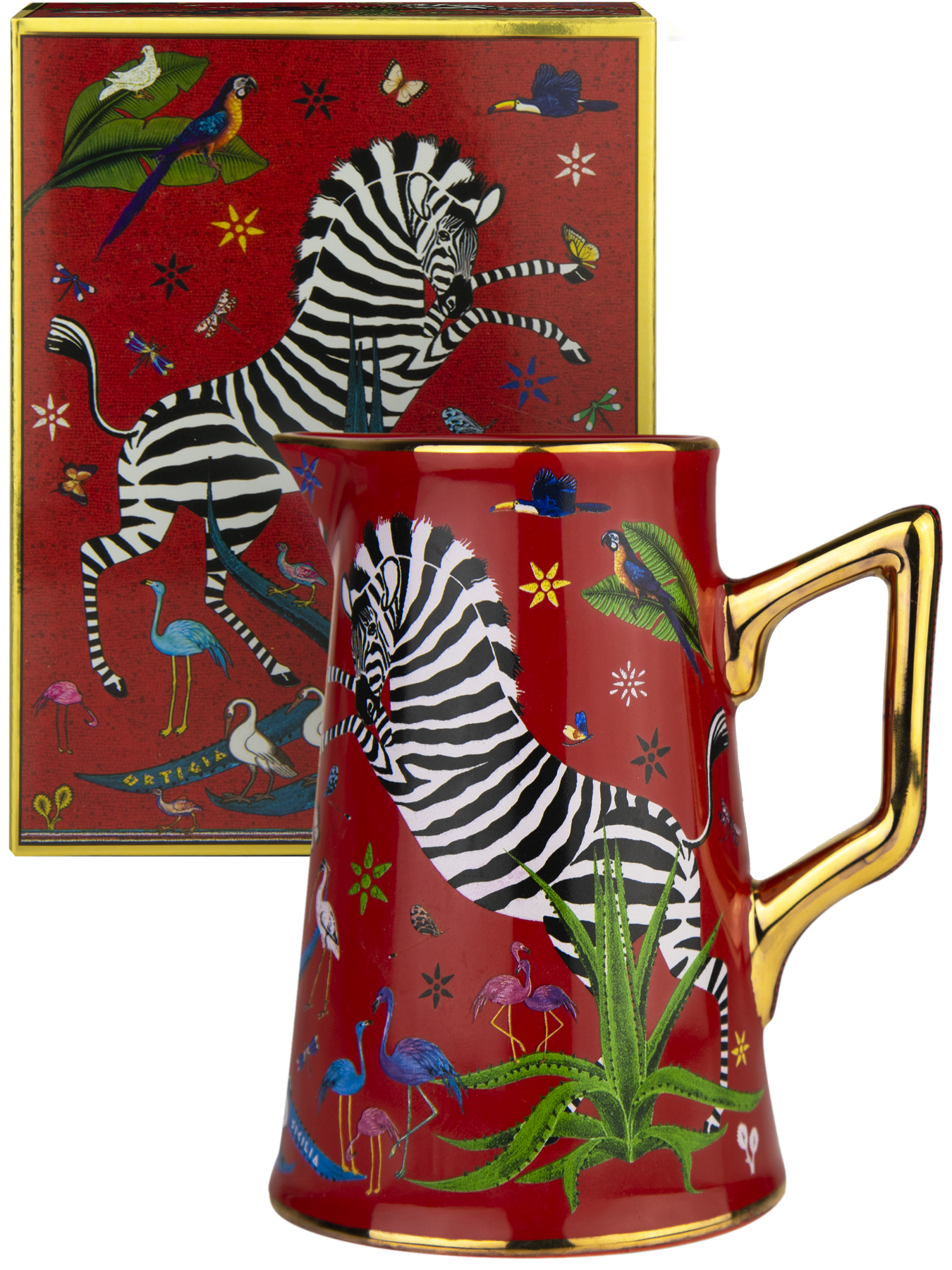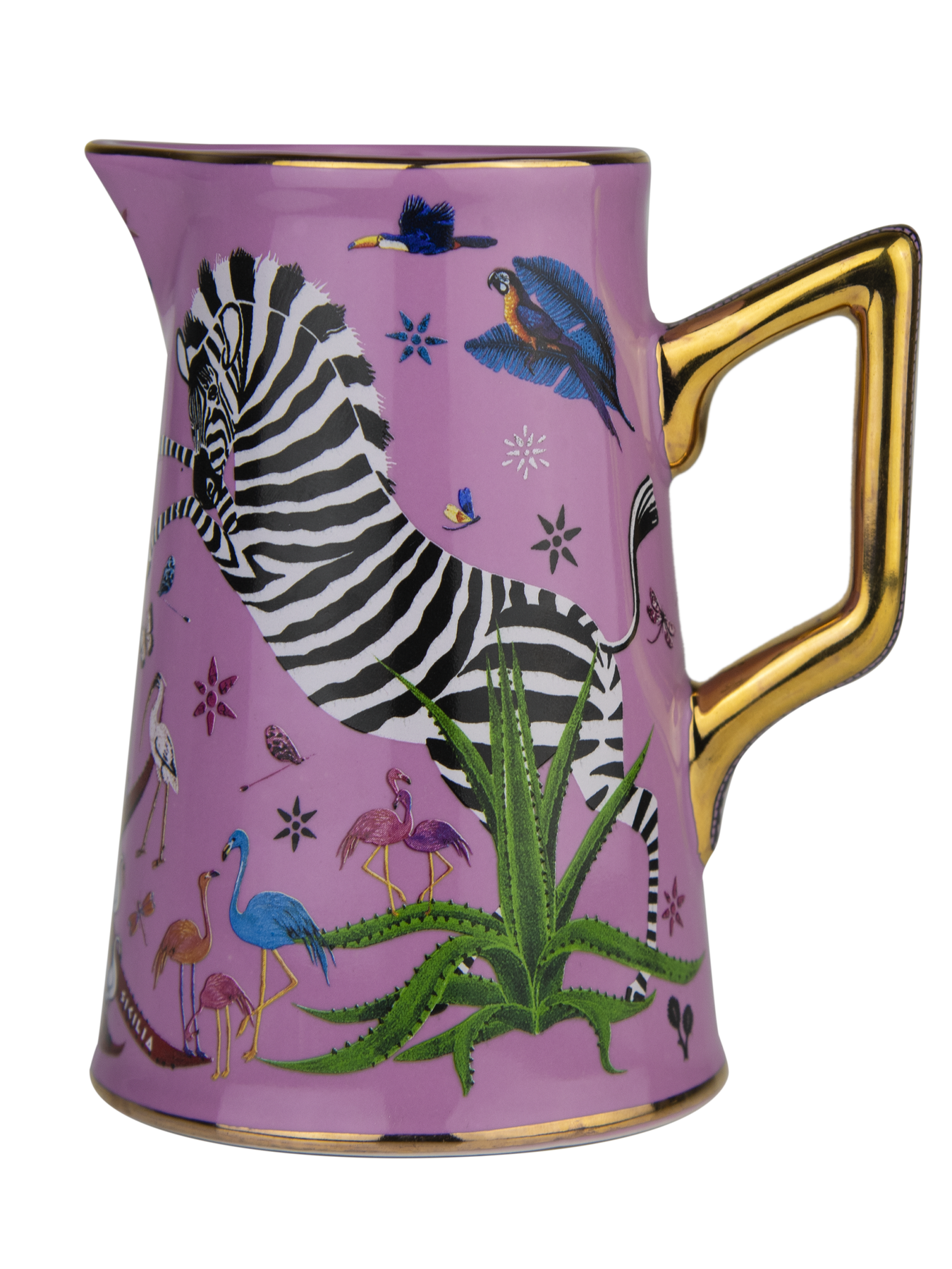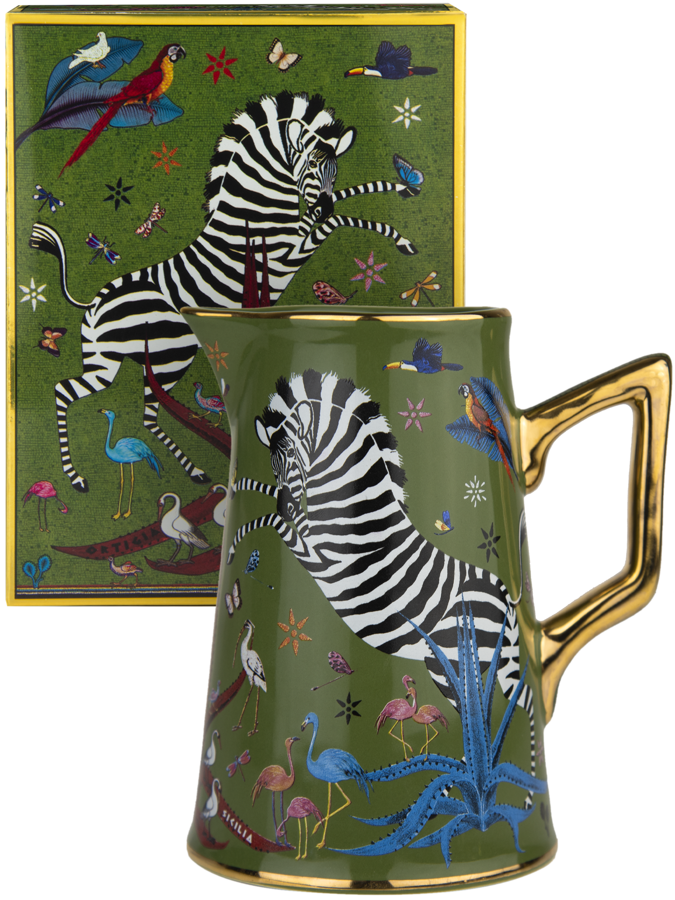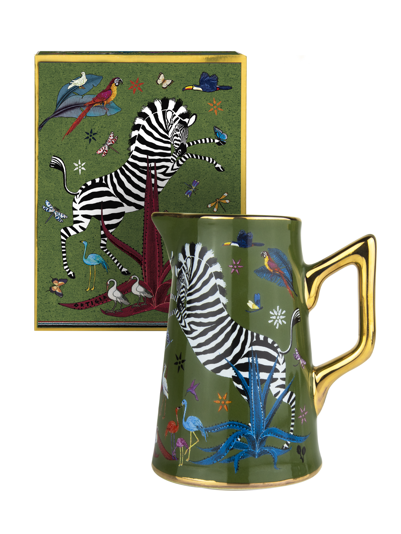 A celebration of craftsmanship and timeless elegance, the Ortigia Ceramic Jug is hand-decorated and adorned with delicate gold serigraphy. Its refined silhouette brings a touch of Sicilian charm to any table, whether styled as a decorative accent or used for serving with grace.